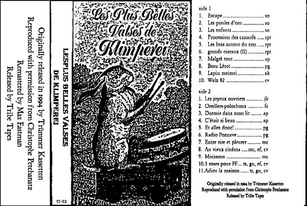 Released by the good folks at Trümmer Kassetten, the cassette culture adds to the album's mystique. Trümmer Kassetten was founded so long ago that it listed its address as “West Germany” for much of its business life. Sadly, the label hasn’t put anything out for over two decades, so this has since made its way to the far more noise-centric pastures of Tribe Tapes. Yes, Tribe Tapes is a cassette-based label, so it makes sense from that viewpoint. Yet something does not sit right with me, having this compilation alongside the likes of Smell & Quim and K2. I like those groups, but they are indecent noise, not this benevolent charming sound, this lovely life.